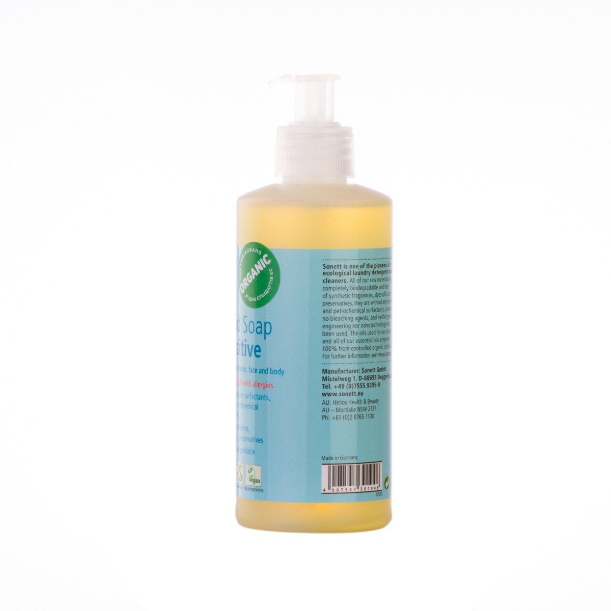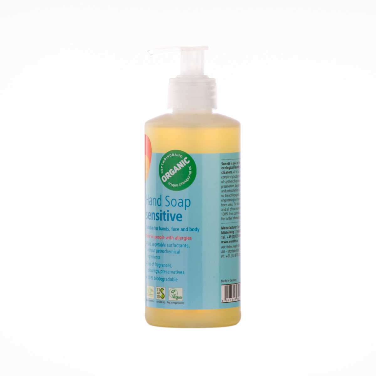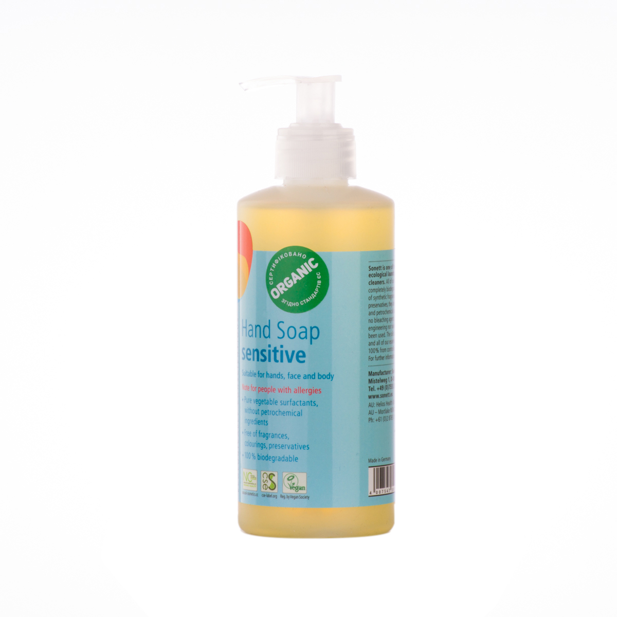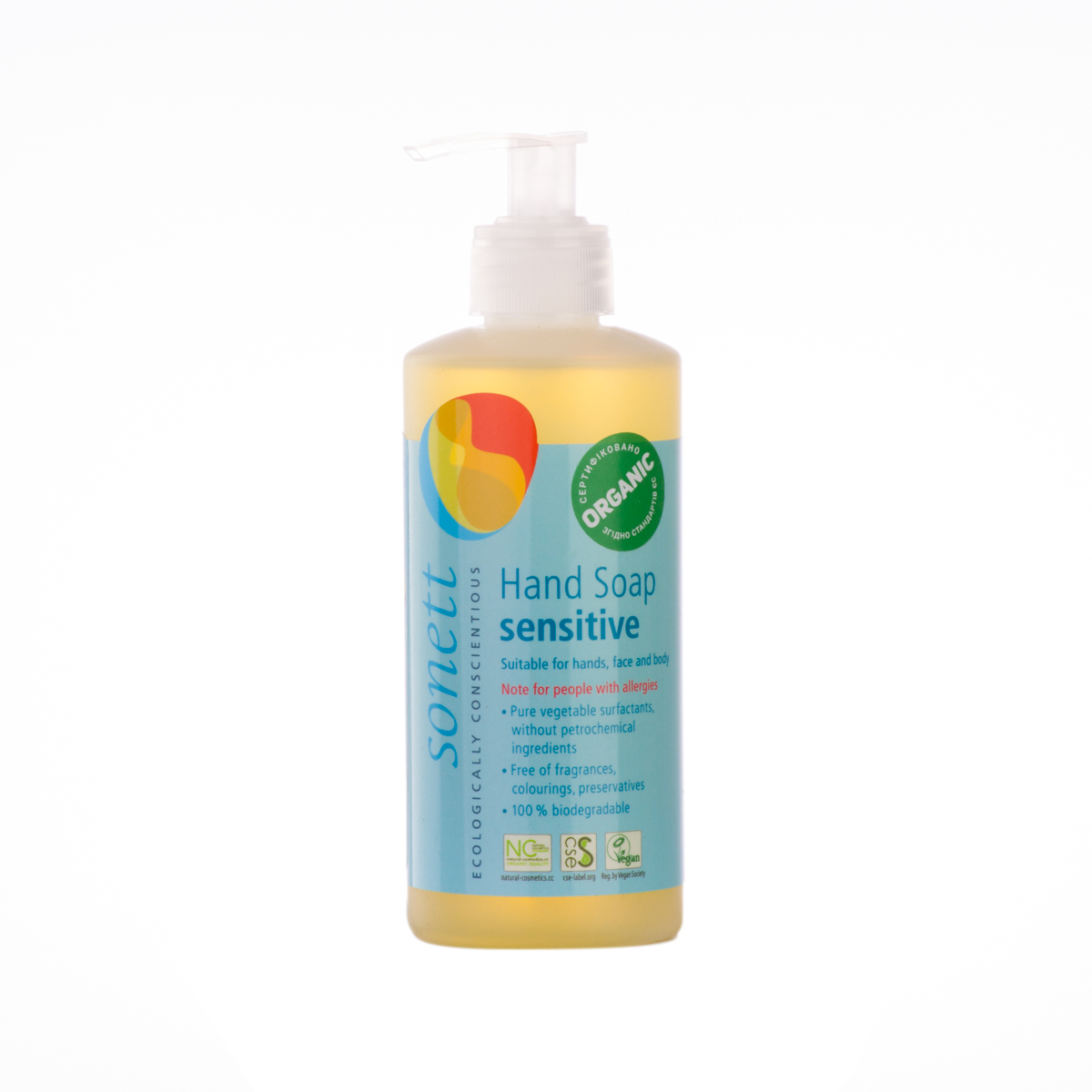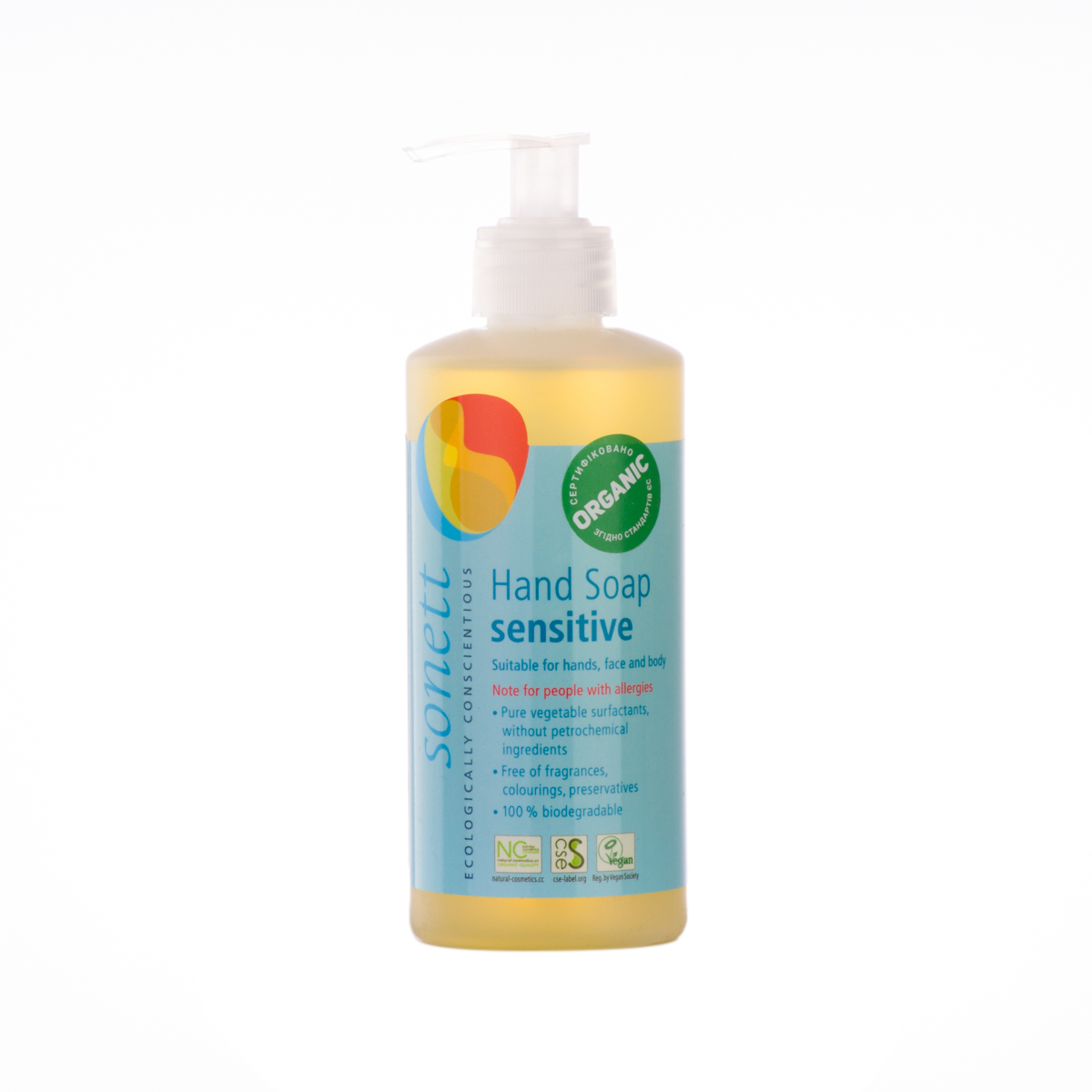 Органічне нейтральне рідке мило Сонетт може використовуватися людьми з чутливою шкірою, схильних до алергічних реакцій, з проявами бронхіальної астми, а також є прекрасним вибором для майбутніх і годуючих мам і малюків з народження. Мило використовується для миття рук і тіла, воно м'яко очищає шкіру, не пересушує її.