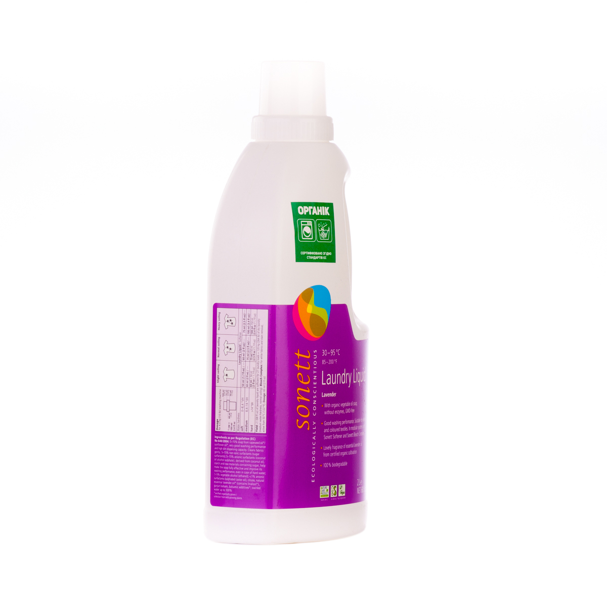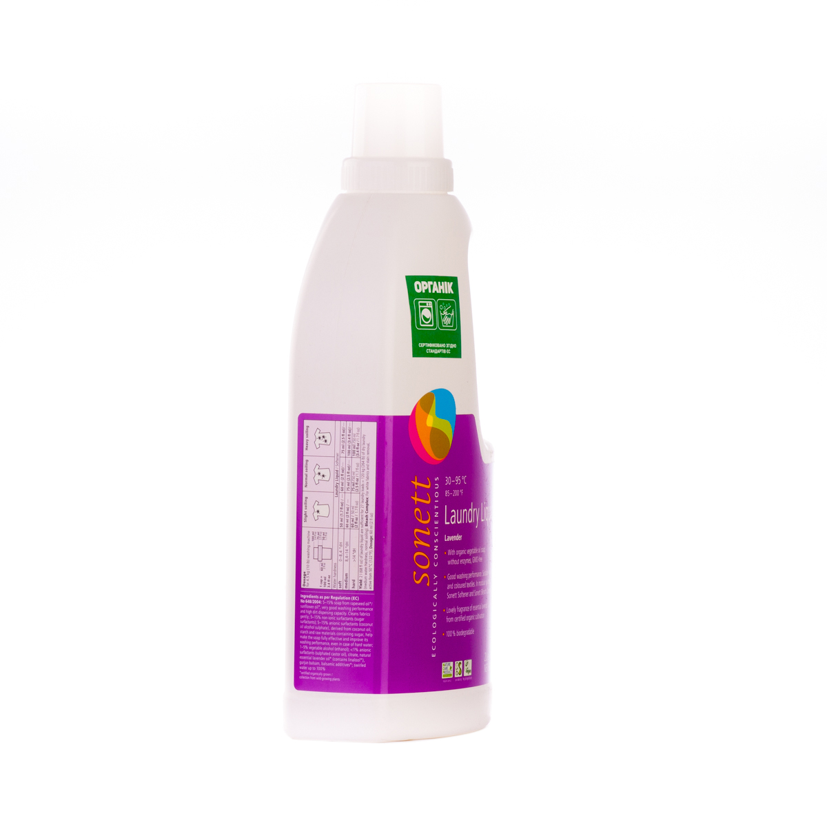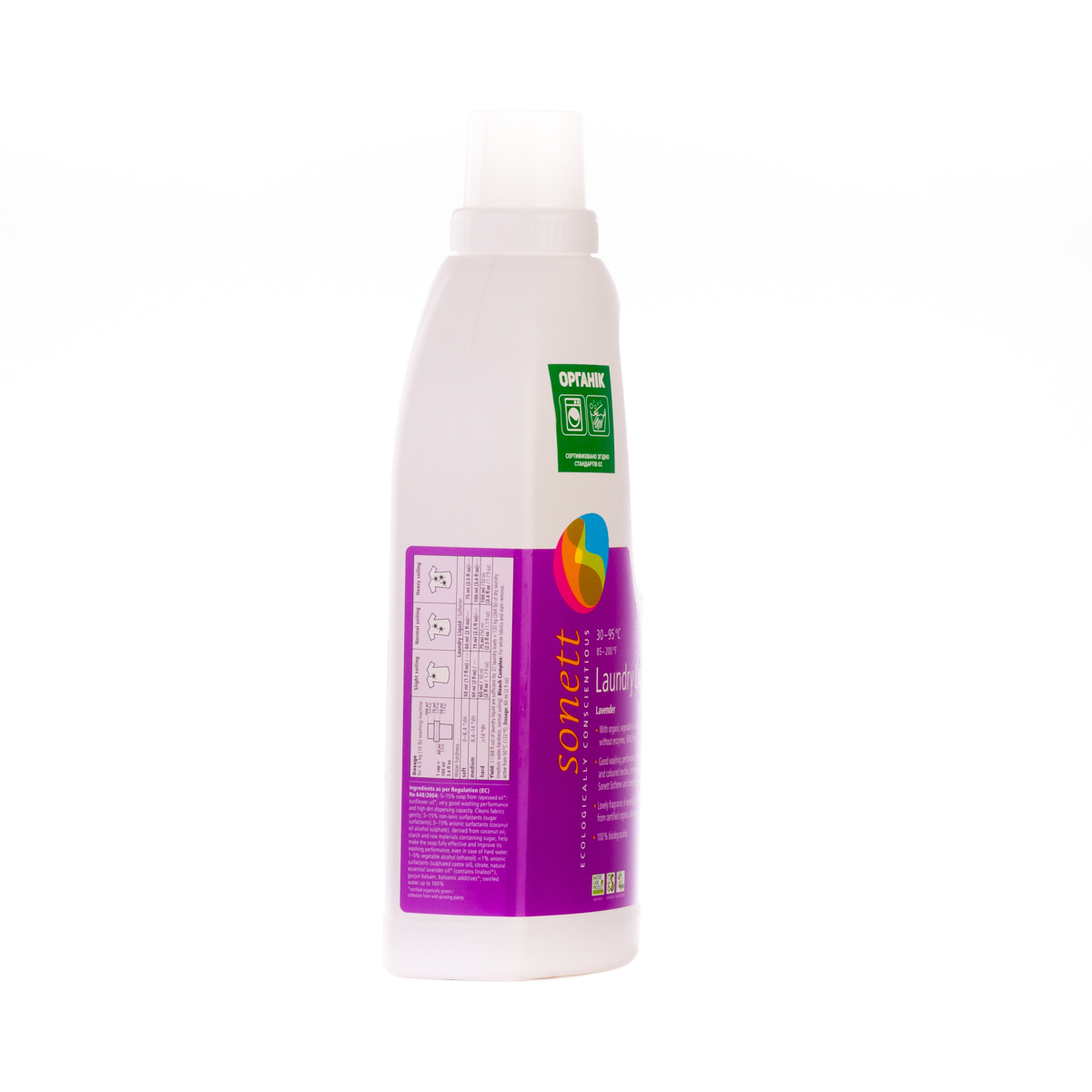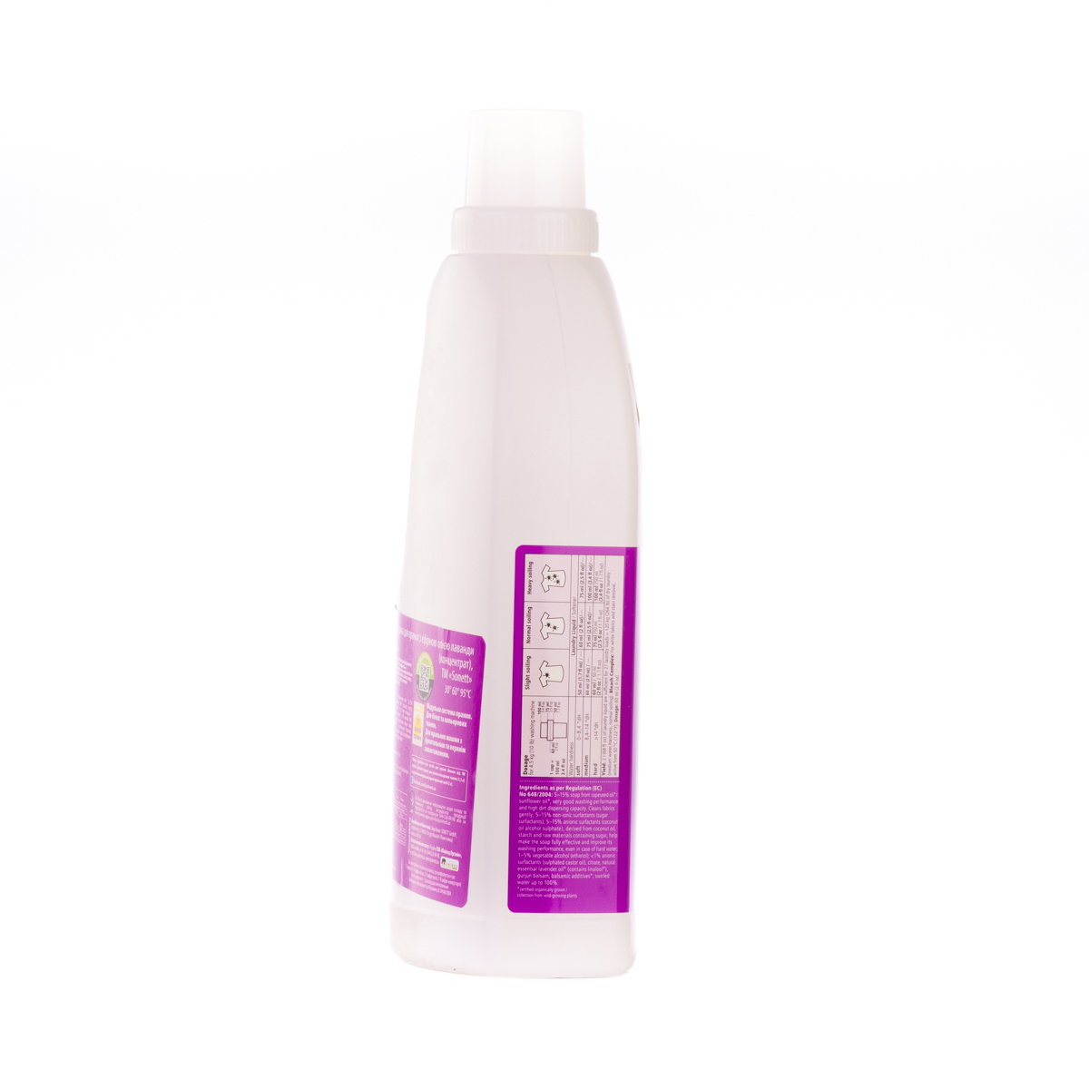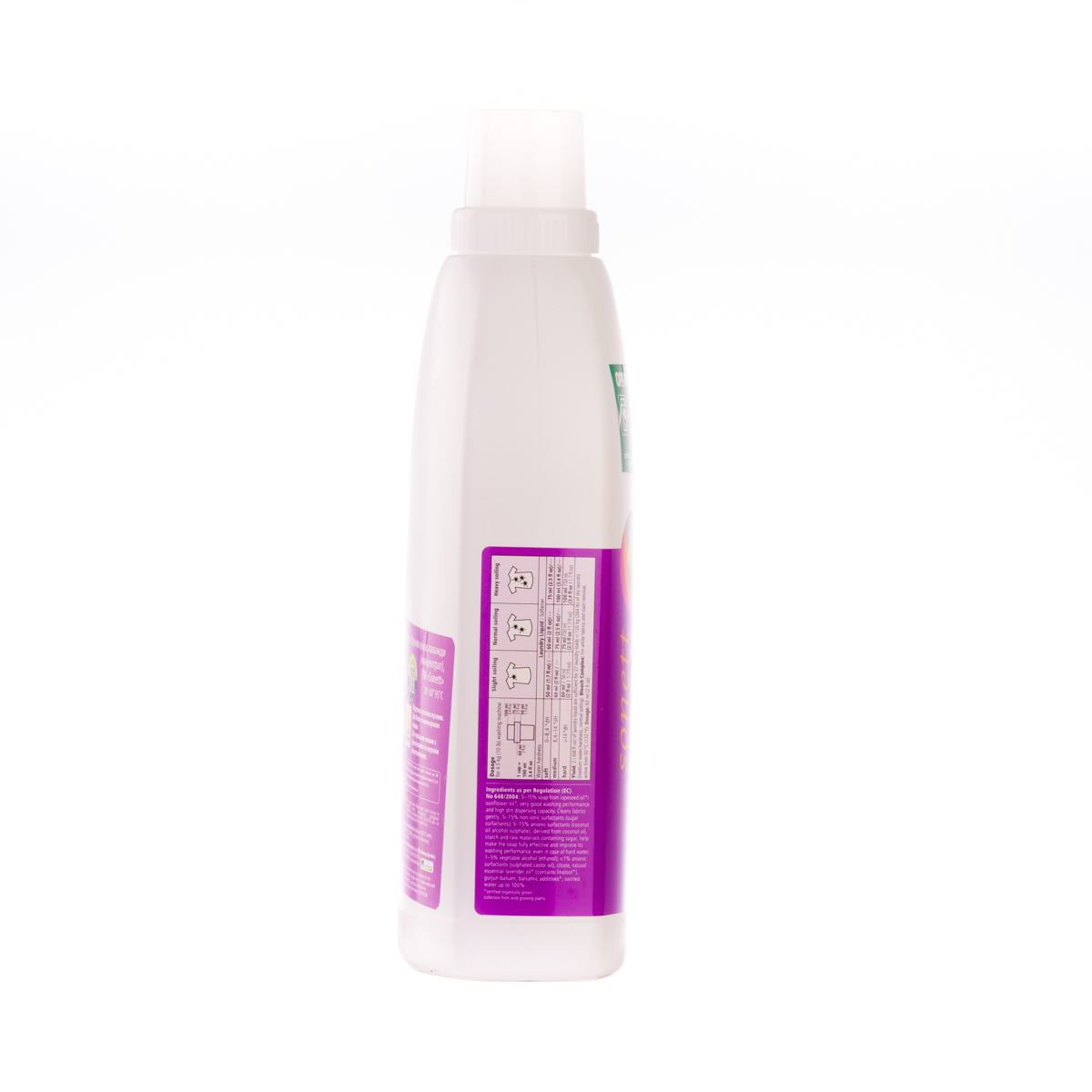 М'яко видаляє забруднення з тканин за допомогою біологічного мила і поверхнево активних речовин цукру. Засіб підходить для всіх кольорових і білих виробів з бавовни, льону, синтетики і тканинних сумішей. Ефективний навіть при низькотемпературному пранні (30°C-40°C) та пранні в жорсткій воді. М'яко видаляє забруднення з тканин за допомогою рослинного мила і поверхнево активних речовин цукру. Температурні режими: 30°C-60°C-95°C градусів.