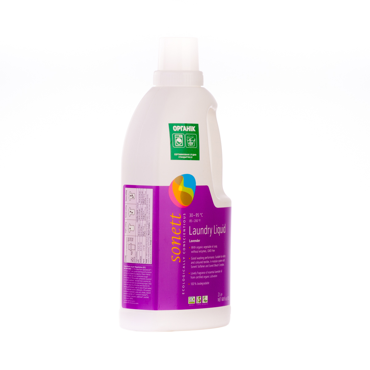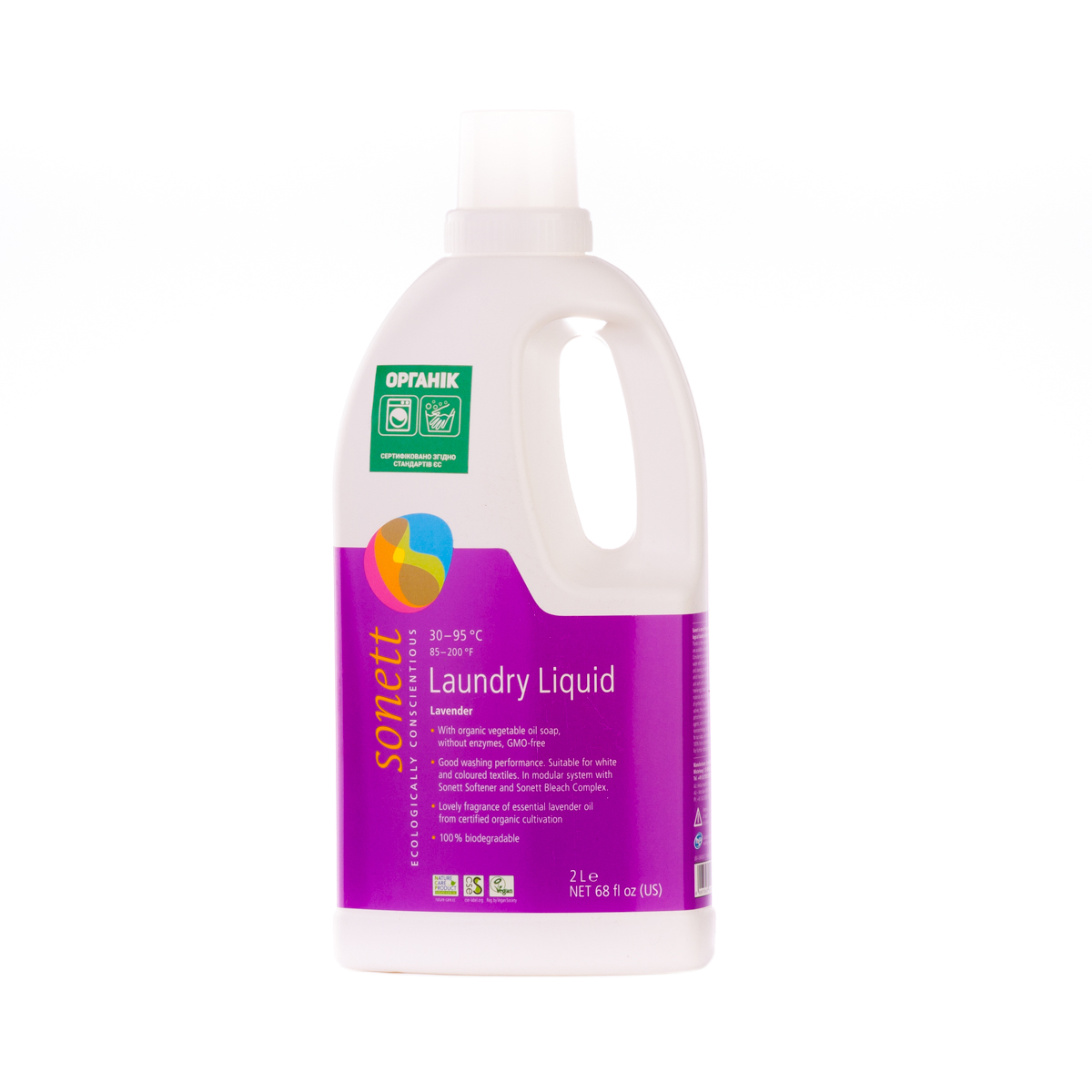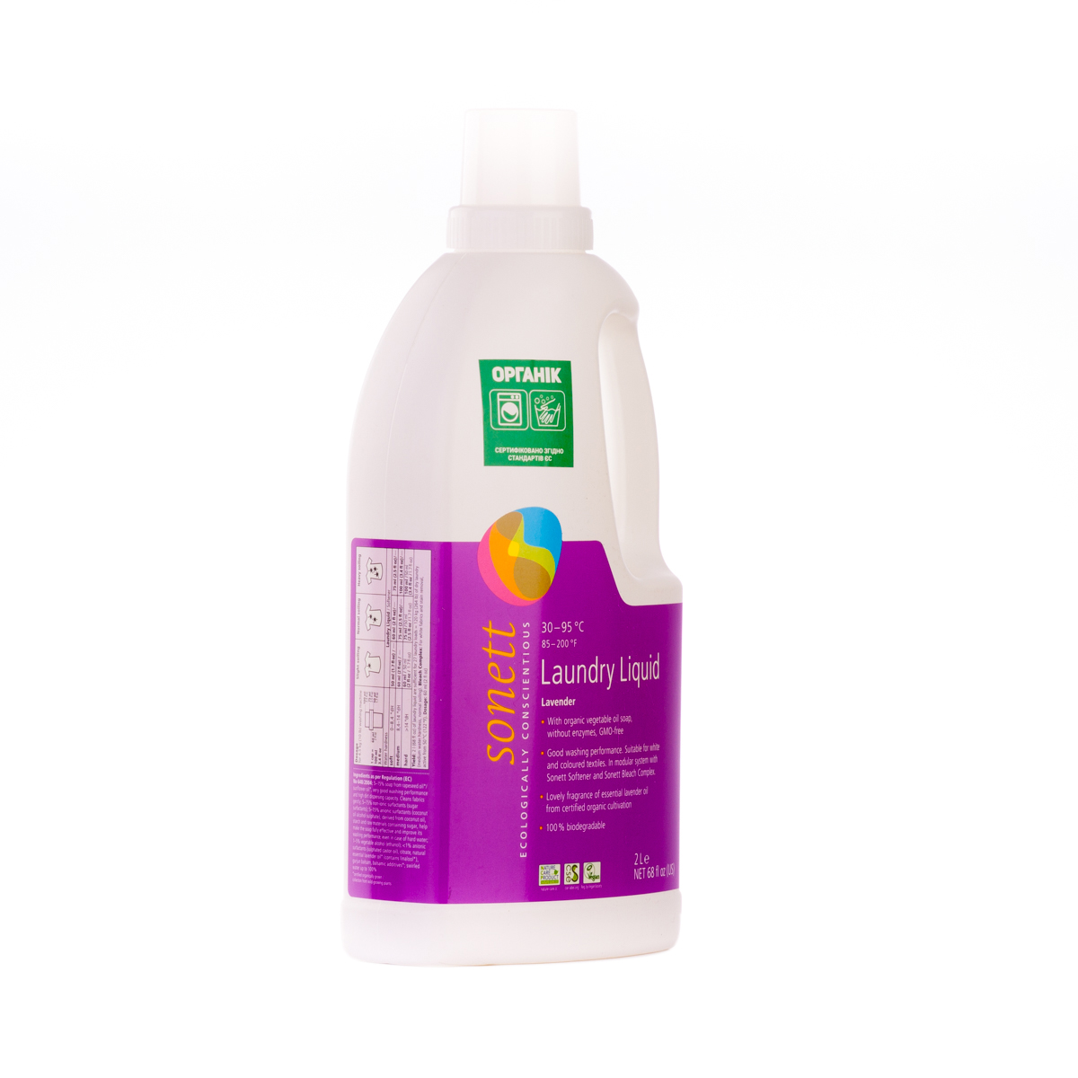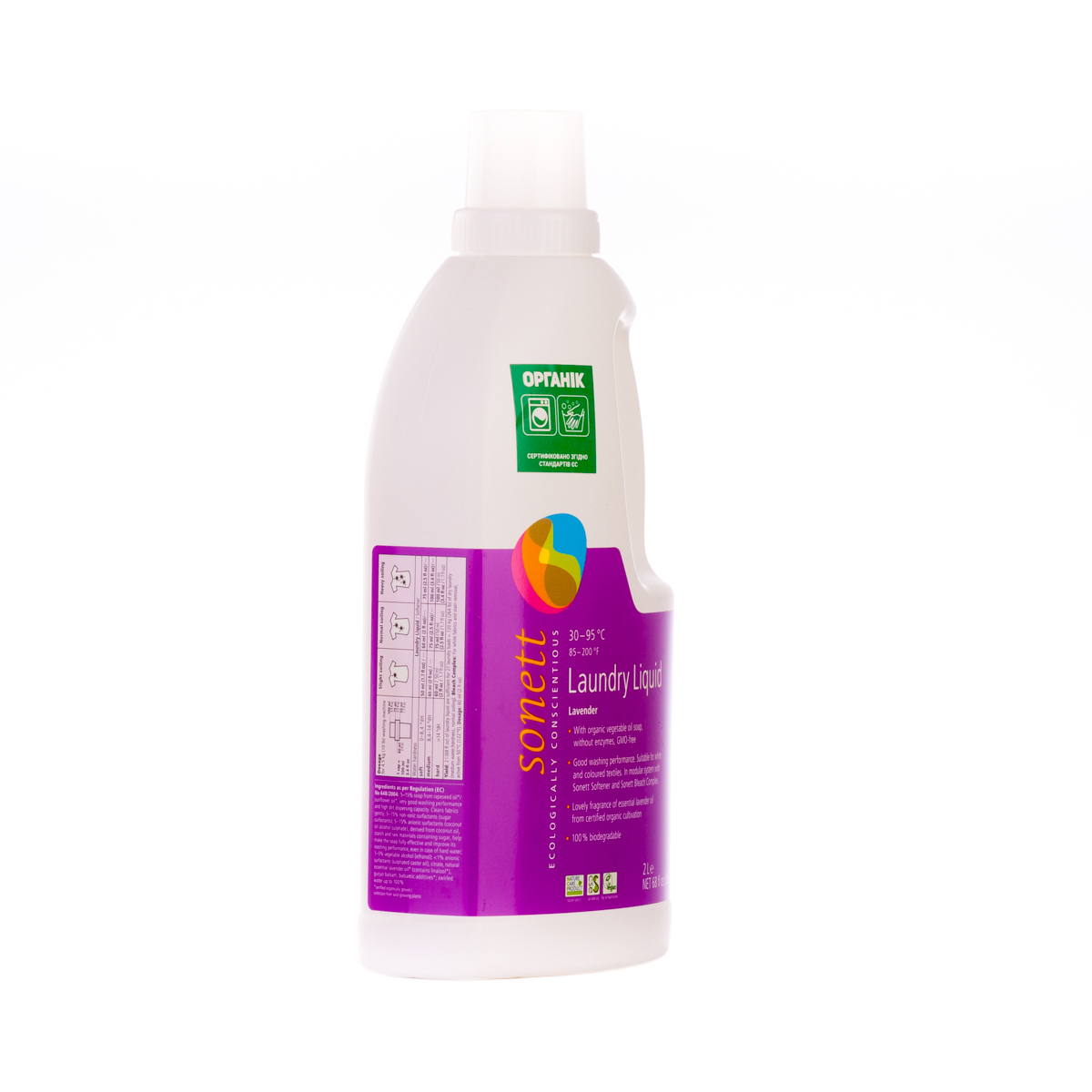 М'яко видаляє забруднення з тканин за допомогою біологічного мила і поверхнево активних речовин цукру. Засіб підходить для всіх кольорових і білих виробів з бавовни, льону, синтетики і тканинних сумішей. Ефективний навіть при низькотемпературному пранні (30°C-40°C) та пранні в жорсткій воді. М'яко видаляє забруднення з тканин за допомогою рослинного мила і поверхнево активних речовин цукру. Температурні режими: 30°C-60°C-95°C градусів.
