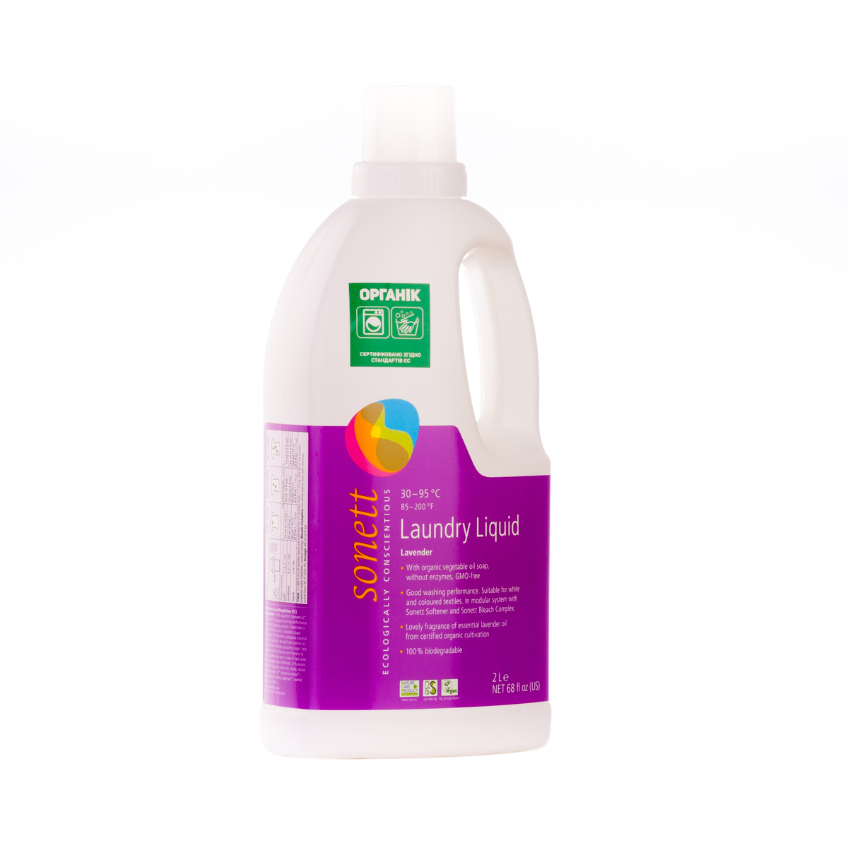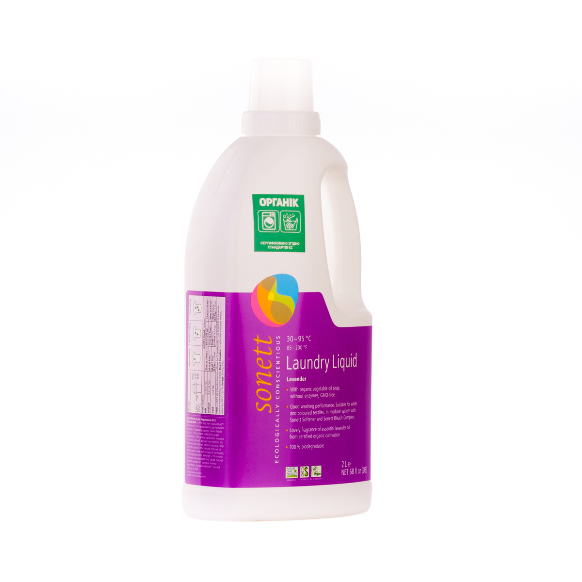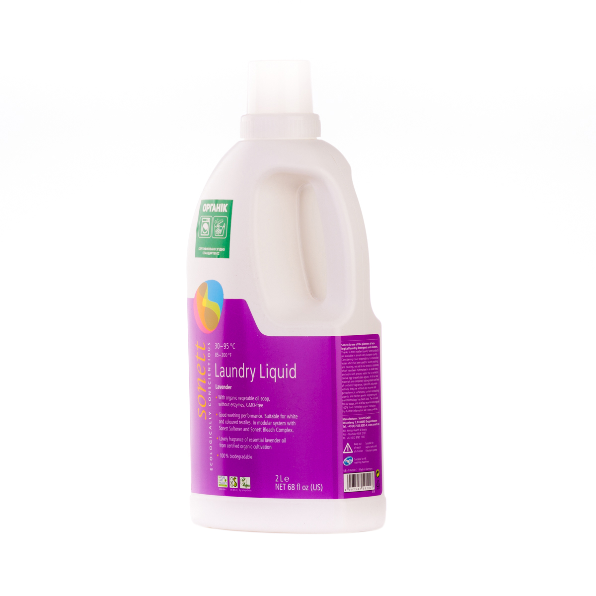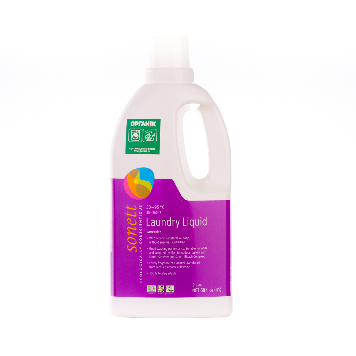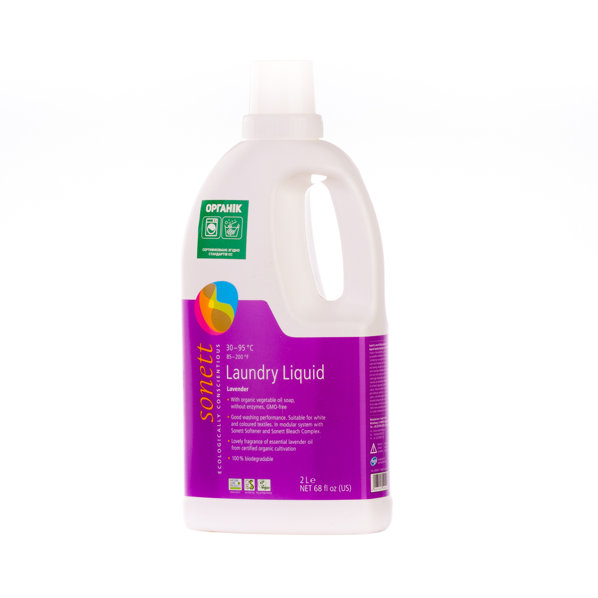 М'яко видаляє забруднення з тканин за допомогою біологічного мила і поверхнево активних речовин цукру. Засіб підходить для всіх кольорових і білих виробів з бавовни, льону, синтетики і тканинних сумішей. Ефективний навіть при низькотемпературному пранні (30°C-40°C) та пранні в жорсткій воді. М'яко видаляє забруднення з тканин за допомогою рослинного мила і поверхнево активних речовин цукру. Температурні режими: 30°C-60°C-95°C градусів.