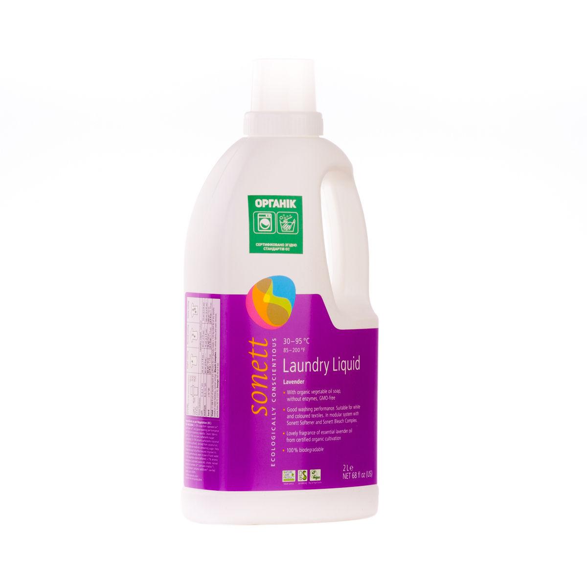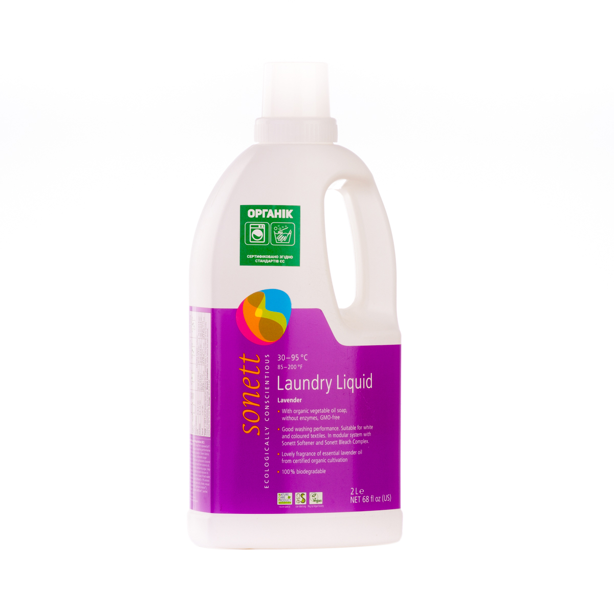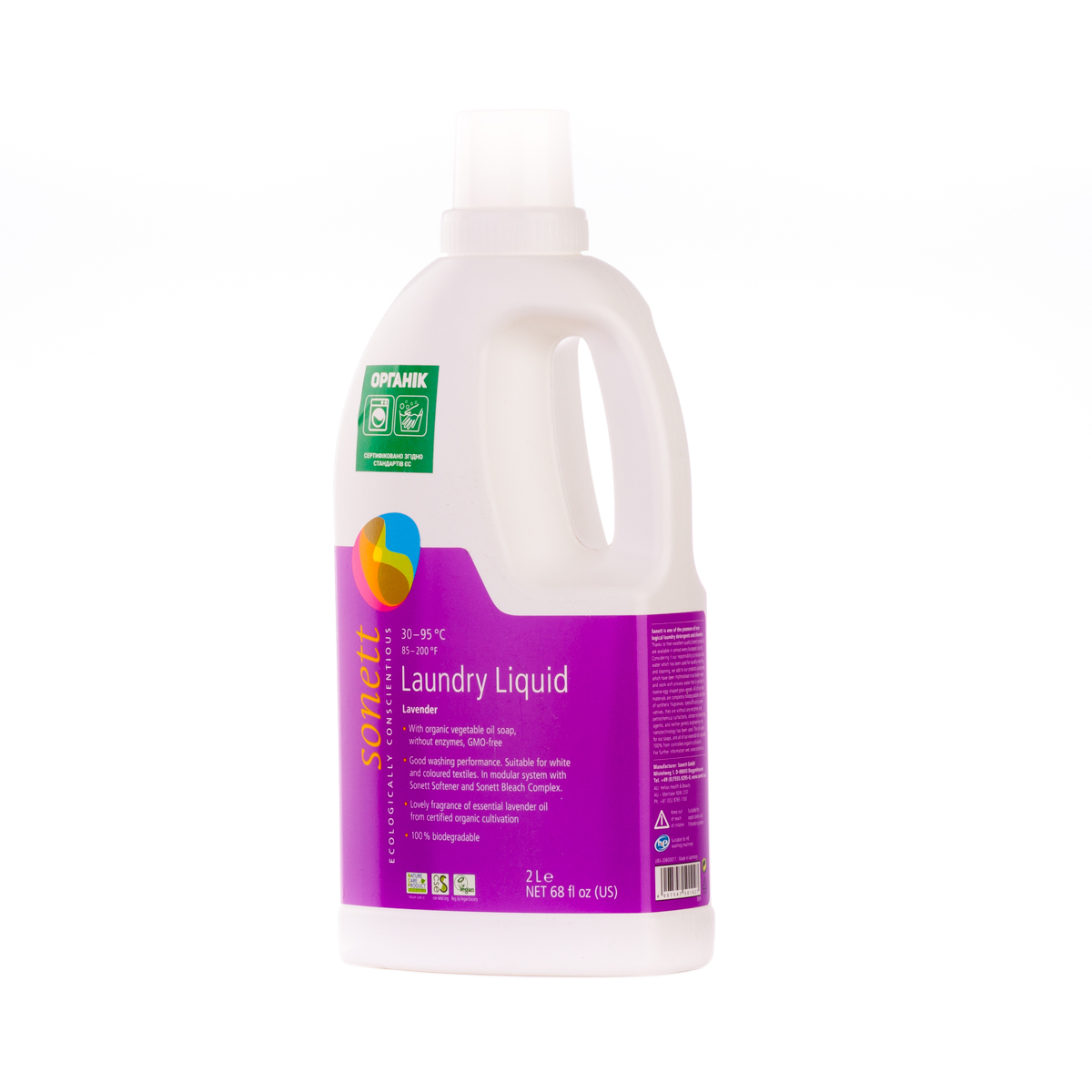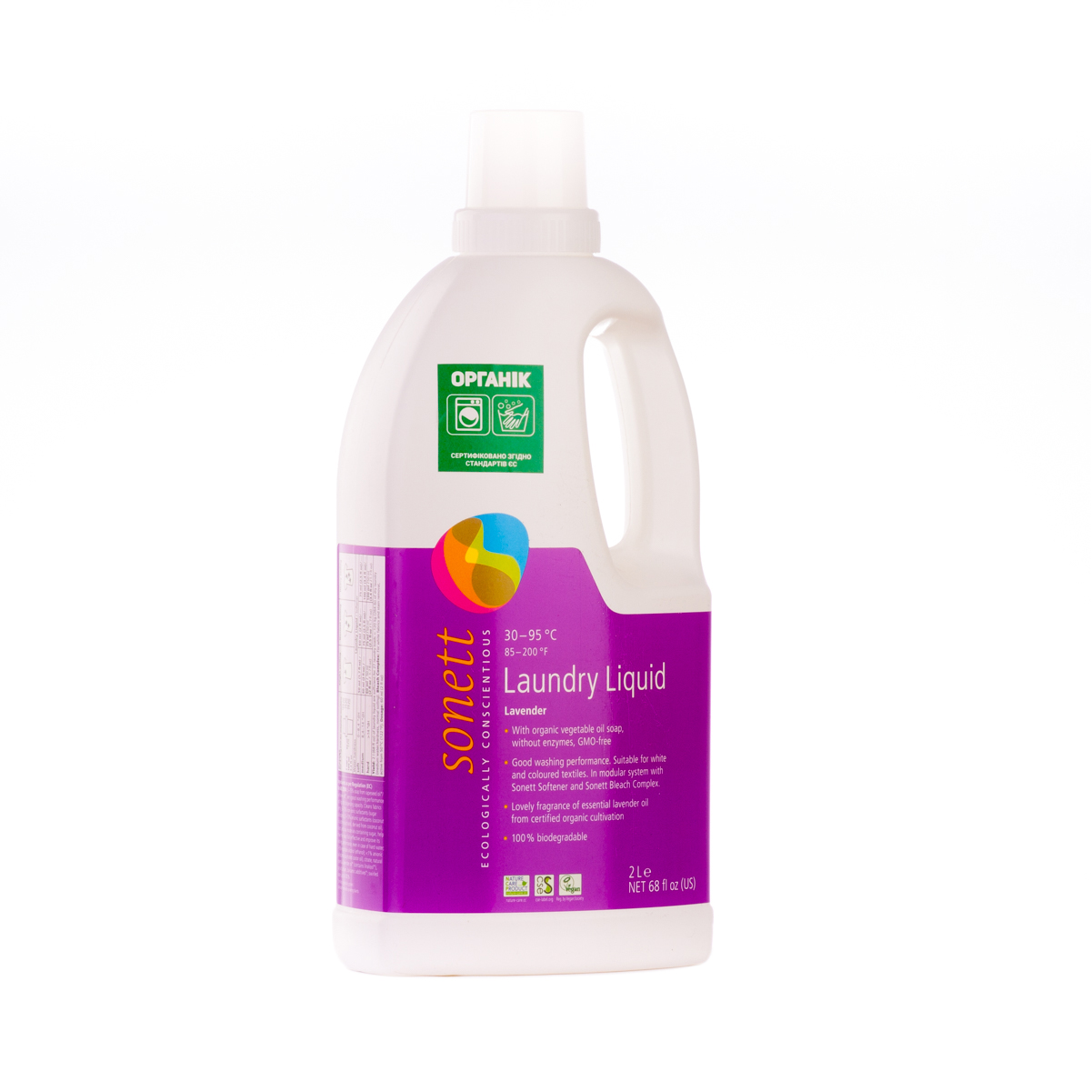М'яко видаляє забруднення з тканин за допомогою біологічного мила і поверхнево активних речовин цукру. Засіб підходить для всіх кольорових і білих виробів з бавовни, льону, синтетики і тканинних сумішей. Ефективний навіть при низькотемпературному пранні (30°C-40°C) та пранні в жорсткій воді. М'яко видаляє забруднення з тканин за допомогою рослинного мила і поверхнево активних речовин цукру. Температурні режими: 30°C-60°C-95°C градусів.