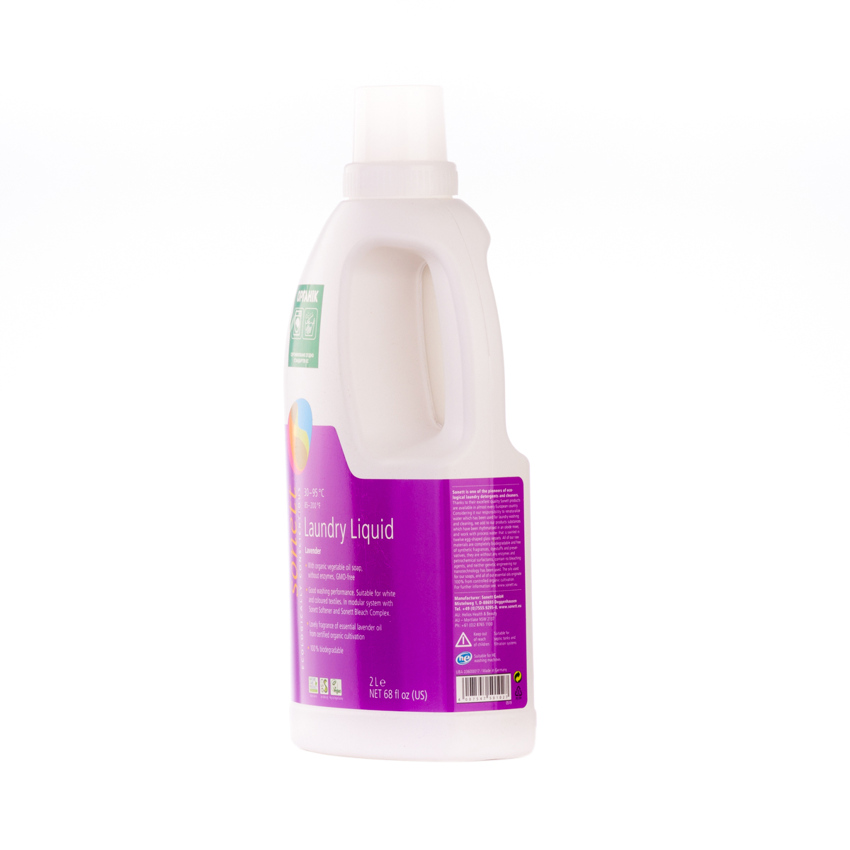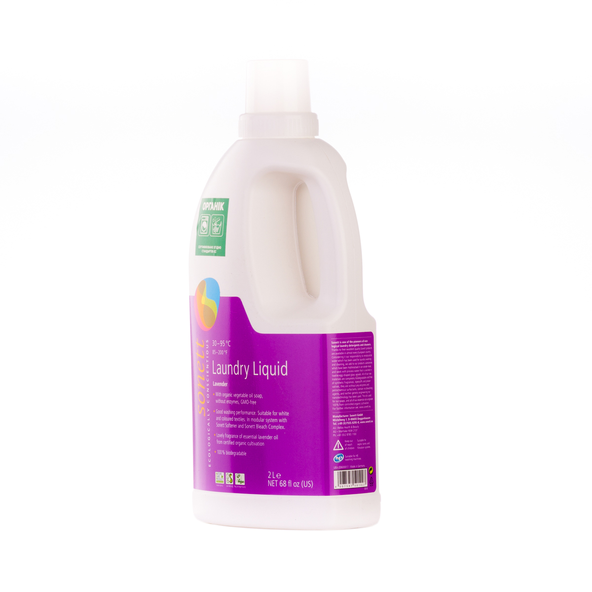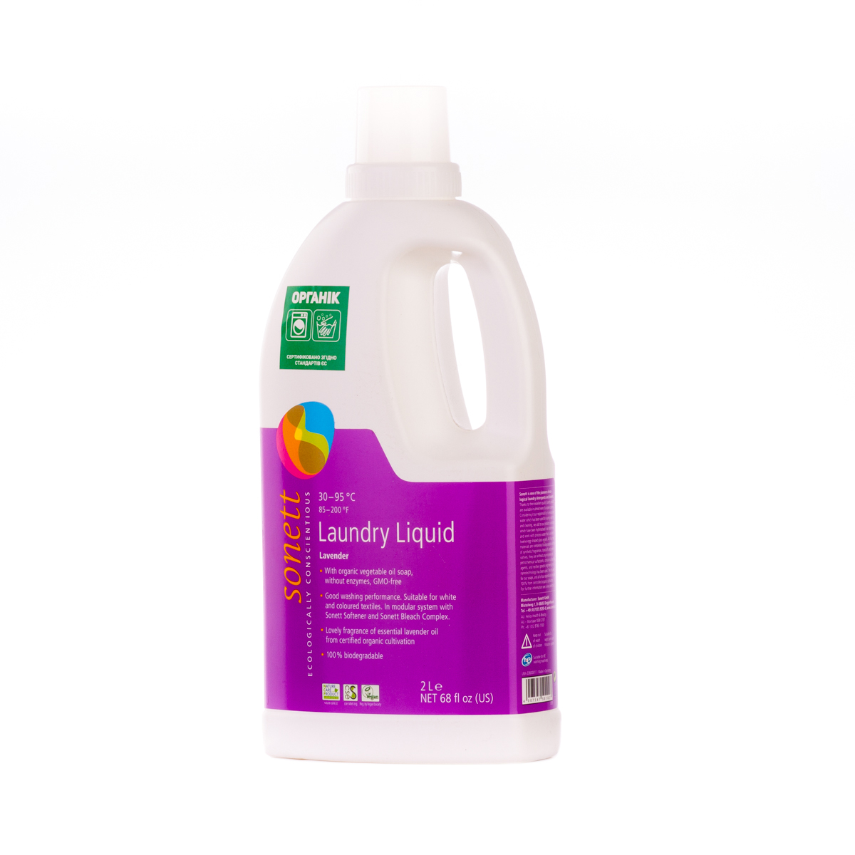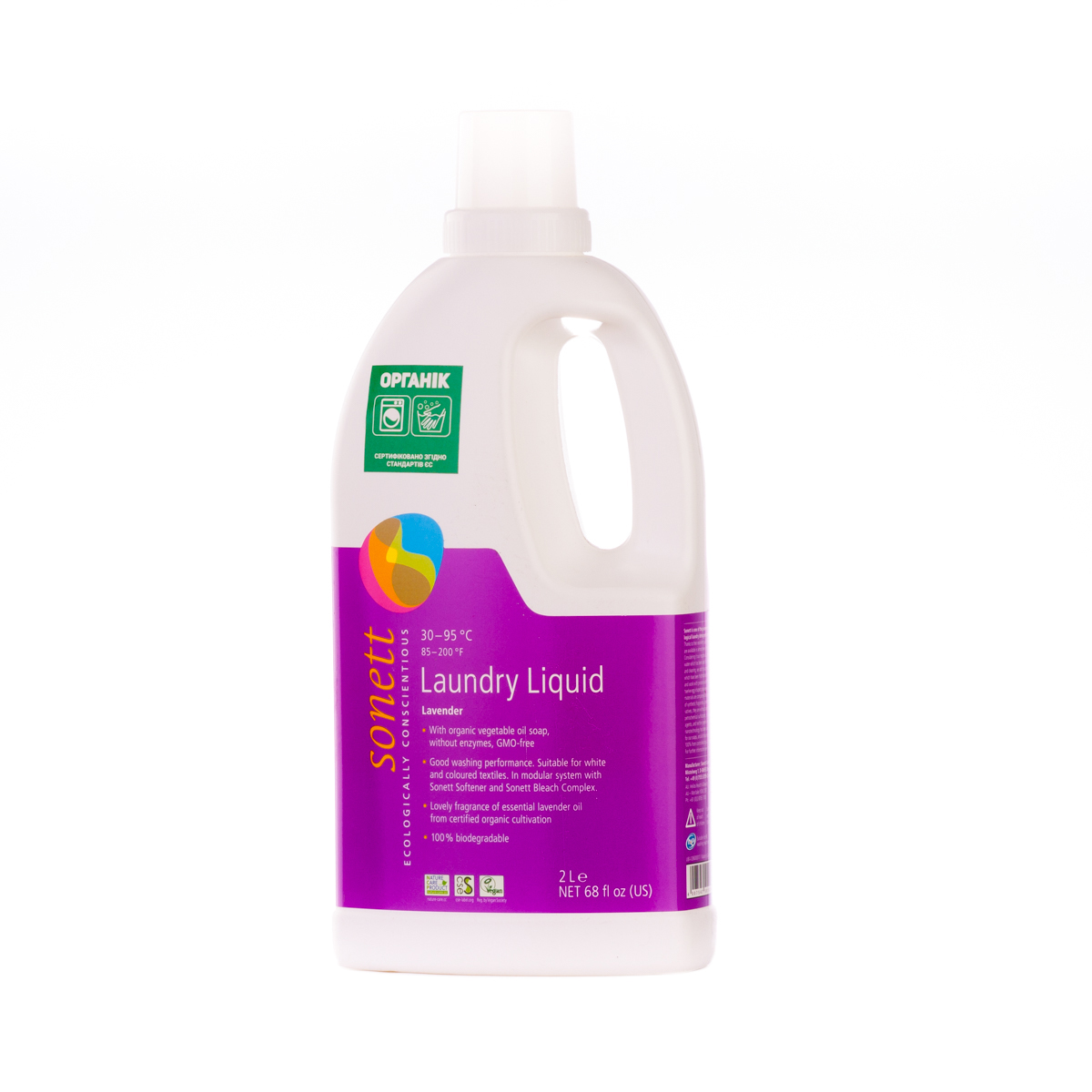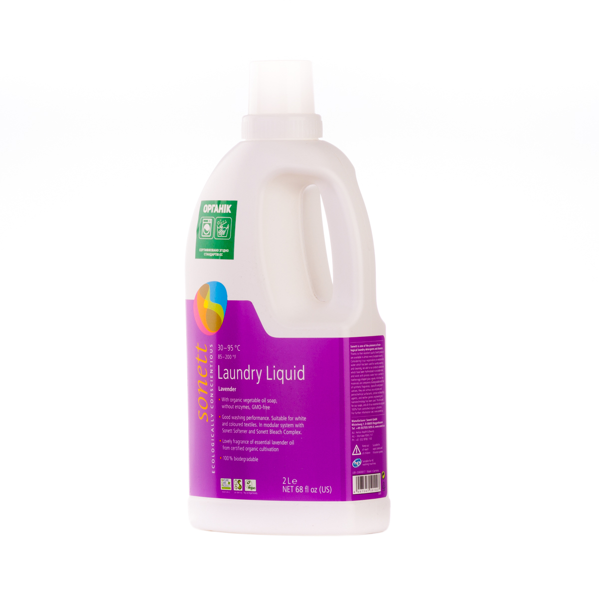 М'яко видаляє забруднення з тканин за допомогою біологічного мила і поверхнево активних речовин цукру. Засіб підходить для всіх кольорових і білих виробів з бавовни, льону, синтетики і тканинних сумішей. Ефективний навіть при низькотемпературному пранні (30°C-40°C) та пранні в жорсткій воді. М'яко видаляє забруднення з тканин за допомогою рослинного мила і поверхнево активних речовин цукру. Температурні режими: 30°C-60°C-95°C градусів.